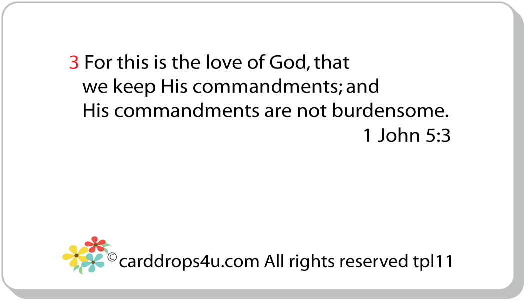 BIBLE VERSE -3 For this is the love of God, that we keep His commandments, and His commandments are not burdensome. 1 John 5:3