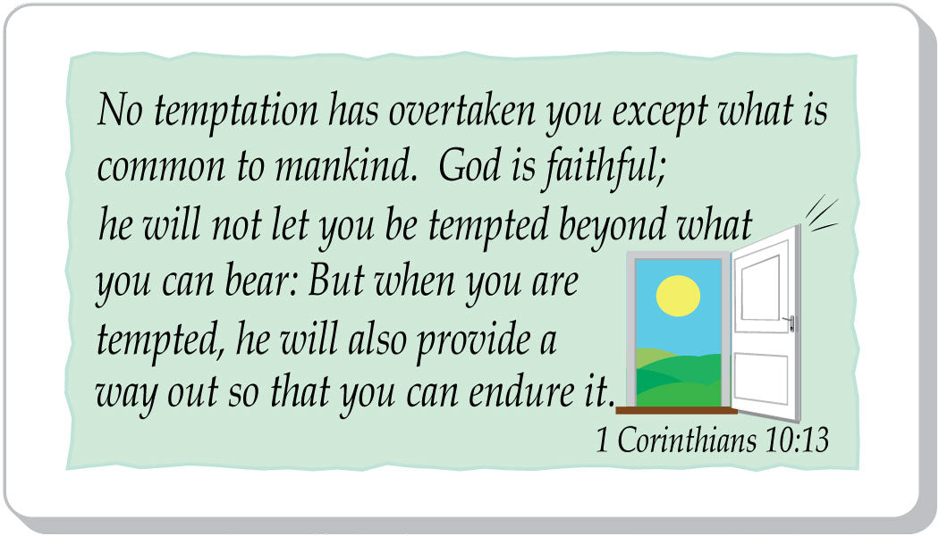 BIBLE VERSE - No temptation has overtaken you except what is common to mankind.  God is faithful; he will not let you be tempted beyond what you can bear: But when you are tempted, he will also provide a way out so that you can endure it. 1 Corinthians 10:13