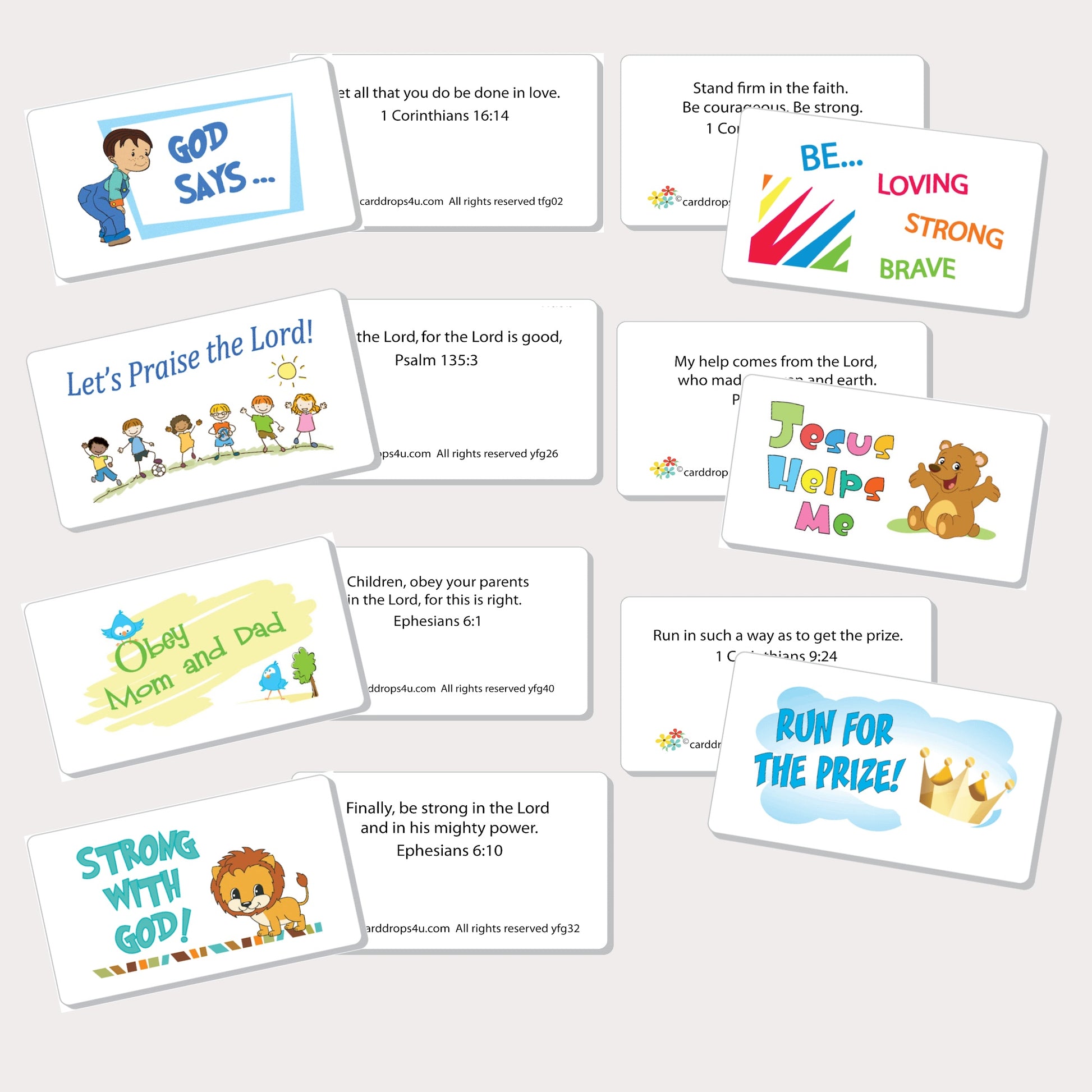 A wonderful teaching set. Seven (7) Bible Verse Cards to learn and memorize. One card for each day of the week.