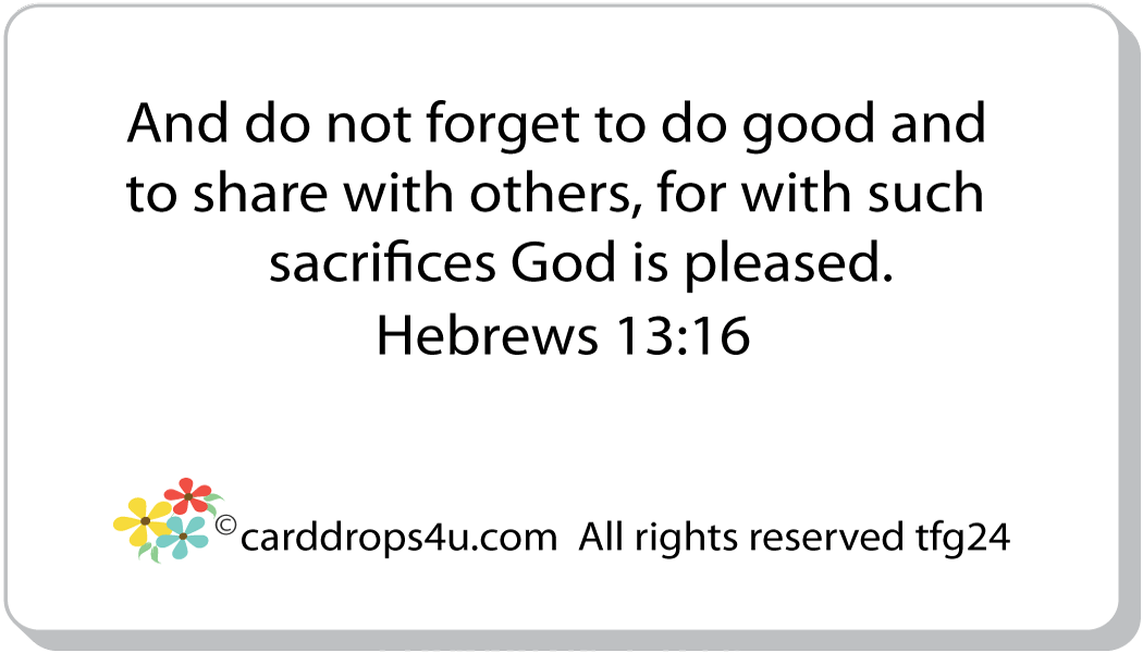 BIBLE VERSE - And do not forget to do good and to share with others, for with such sacrifices God is pleased Hebrews 13:16