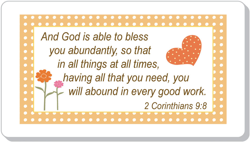 BIBLE VERSE - And God is able to bless you abundantly, so that in all things at all times, having all that you need, you will abound in every good work. 2 Corinthians 9:8