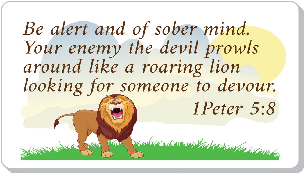 BIBLE VERSE - Be alert and of sober mind.  Your enemy the devil prowls around like a roaring lion looking for someone to devour. 1 Peter 5:8