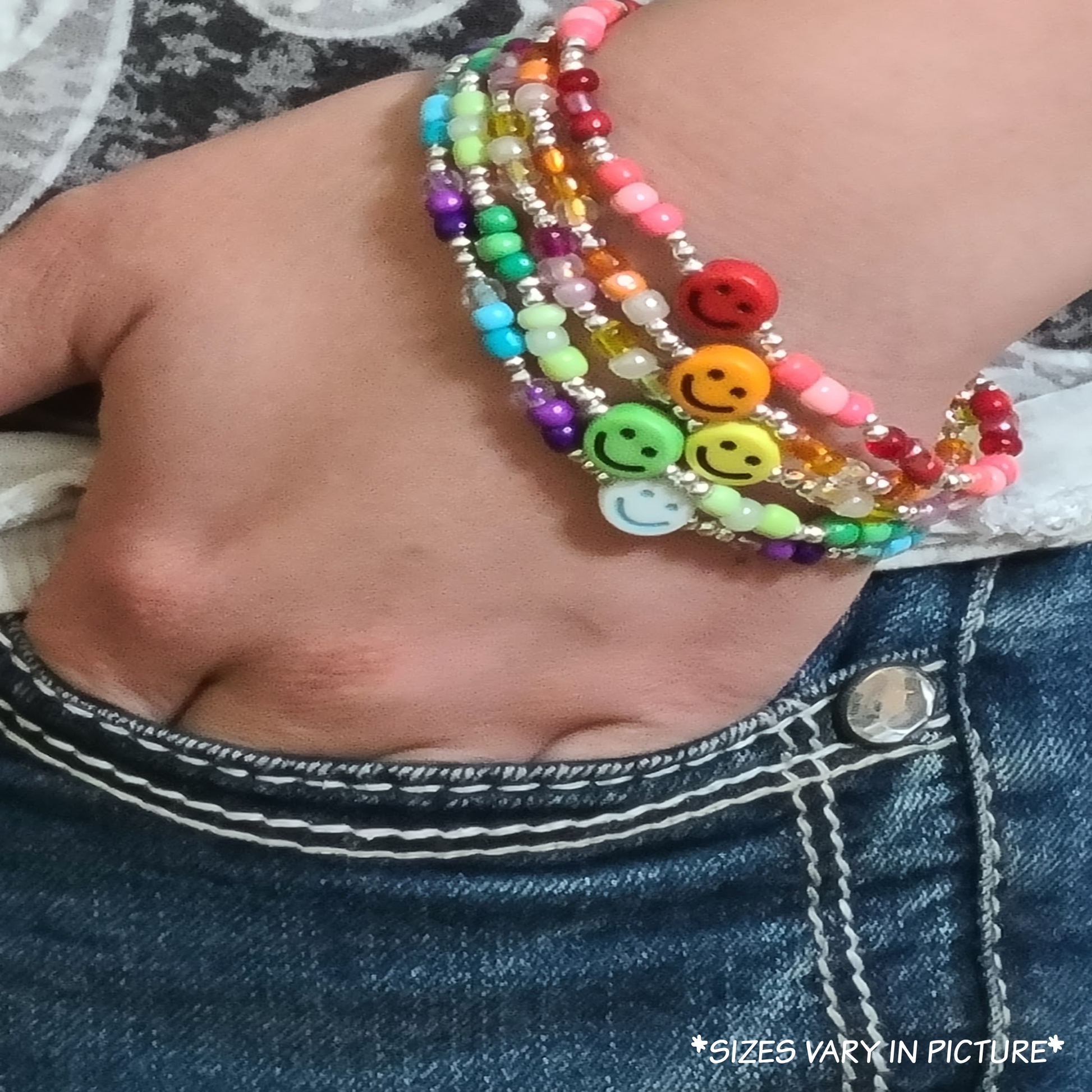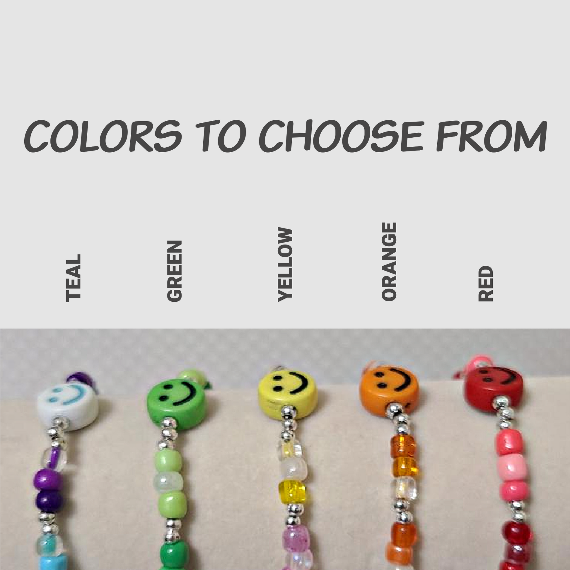 Smiles brighten any day! These Happy Smile Bracelets will keep you smiling throughout the day. Each bracelet has its own blend of colorful seed beads that accent the smiley face. Fun to wear and easy to roll on and off your wrist with our soft, sturdy clear stretchy cord. Perfect for every day use for you as well as for kids and teens alike. Make great gifts for anyone!