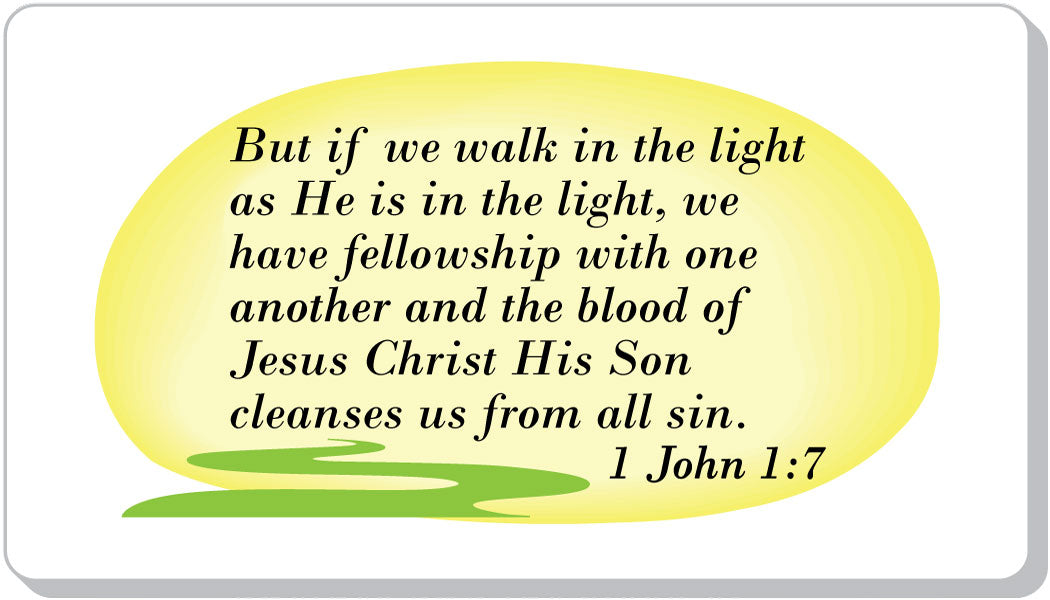 BIBLE VERSE - But if we walk in the light as He is in the light, we have fellowship with one another and the blood of Jesus Christ His Son cleanses us from all sin. 1 John 1:7
