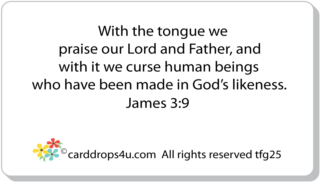 BIBLE VERSE- With the tongue we praise our Lord and Father, and with it we curse human beings, who have been made in God's likeness. James 3:9