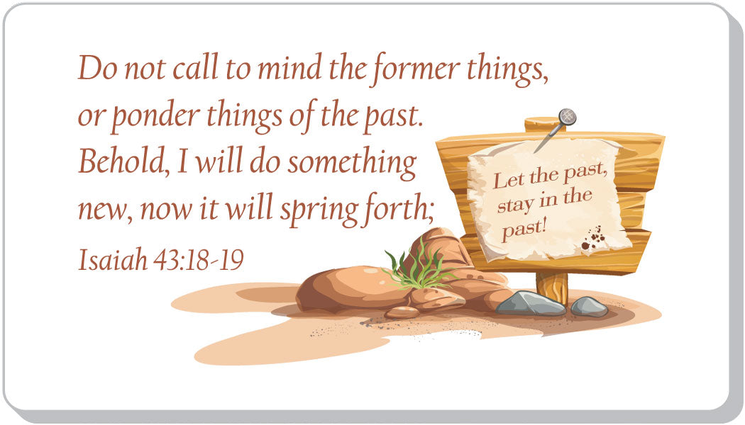 BIBLE VERSE - Do not call to mind the former things, or ponder things of the past. Behold, I will do something new, now it will spring forth; Isaiah 43:18-19