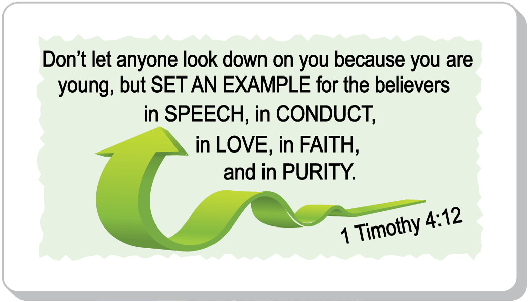 BIBLE VERSE - Don't let anyone look down on you because you are young, but SET AN EXAMPLE for the believers in speech, in conduct, in love, in faith, and in purity. 1 Timothy 4:12