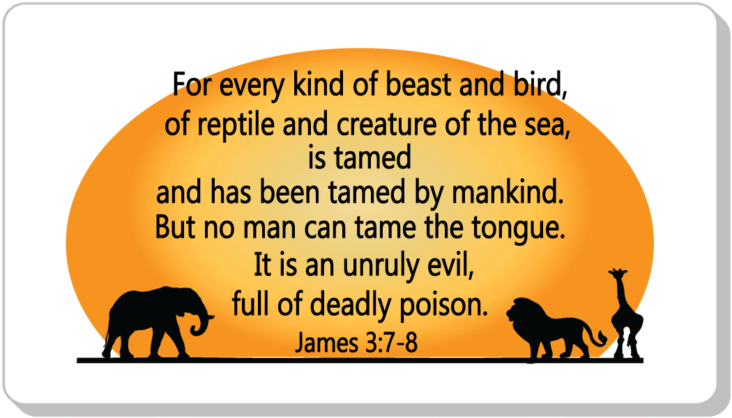 BIBLE VERSE - For every kind of beast and bird, of reptile and creature of the sea, is tamed and has been tamed by mankind. But no man can tame the tongue. It is an unruly evil, full of deadly poison. James 3:7-8
