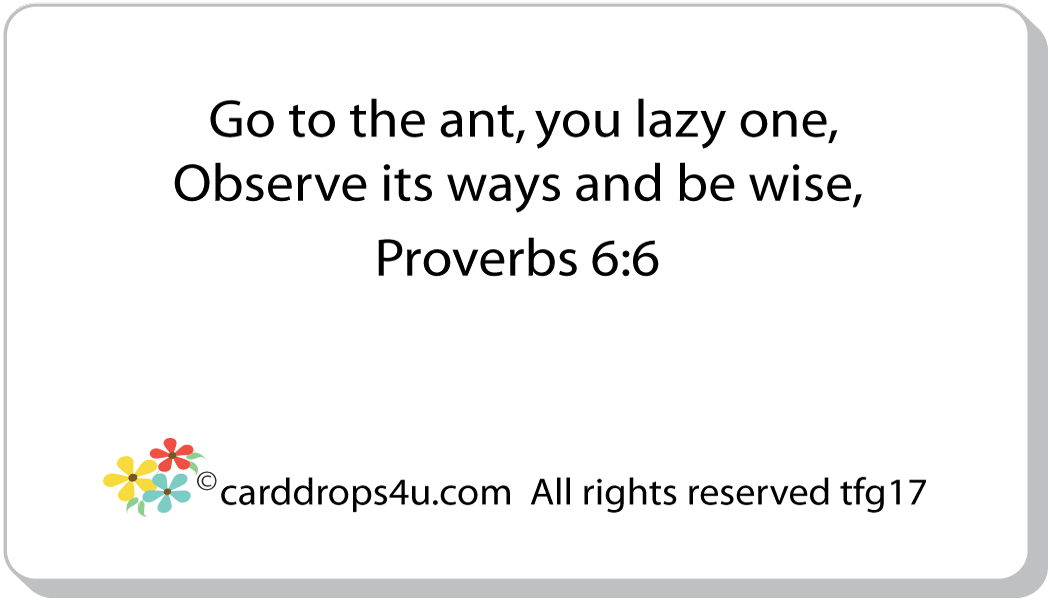 BIBLE VERSE - Go to the ant, you lazy one, observe its ways and be wise, Proverbs 6:6