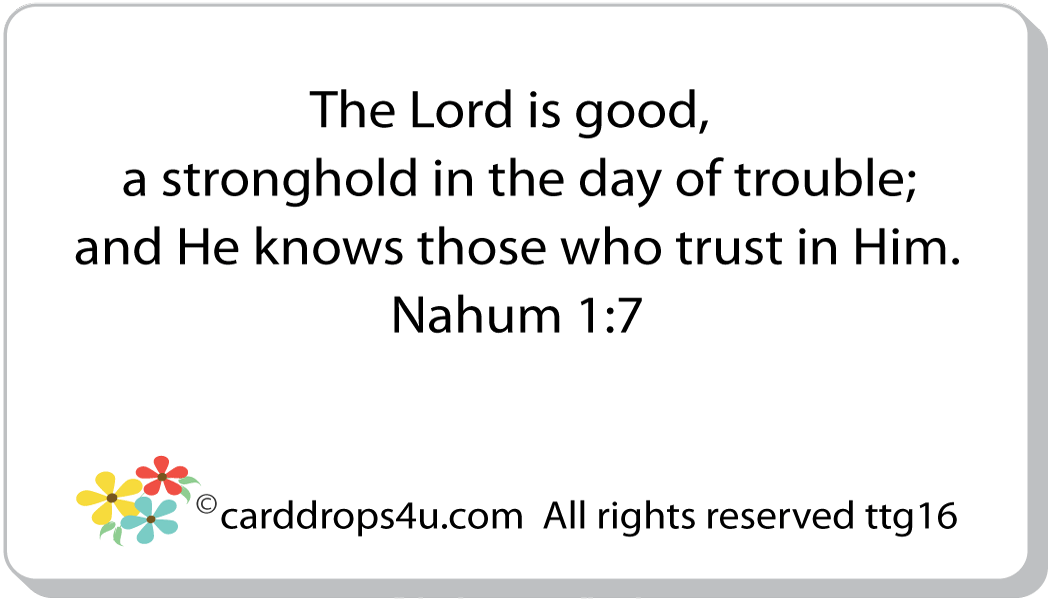 BIBLE VERSE - The Lord is good, a strong refuge when trouble comes. He is close to those who trust in him. Nahum 1:7