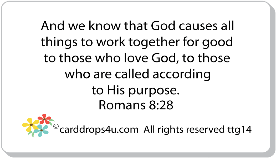 BIBLE VERSE - And we know that God causes all things to work together for good to those who love God, to those who are called according to His purpose. Romans 8:28
