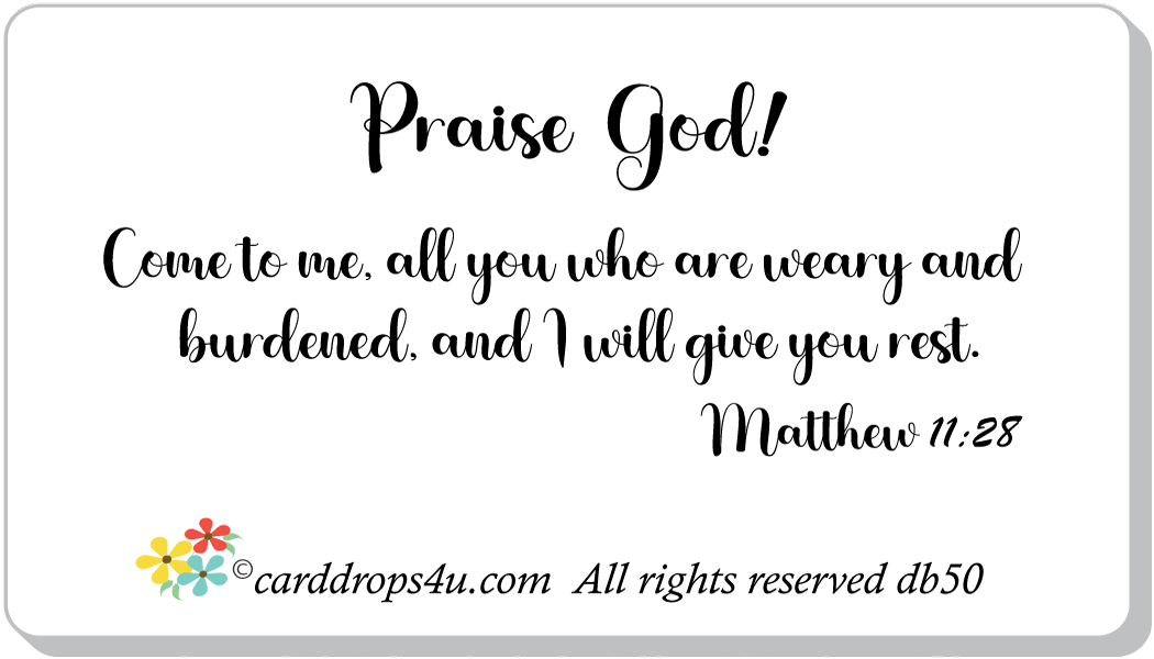 BIBLE VERSE - Come to me, all you who are weary and burdened, and I will give you rest. Matthew 11:28