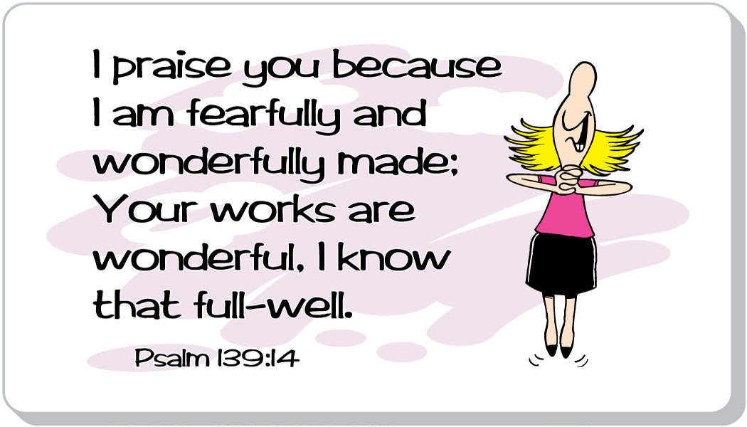 BIBLE VERSE - I praise you because I am fearfully and wonderfully made; Your works are wonderful, I know that full-well. Psalm 139:14