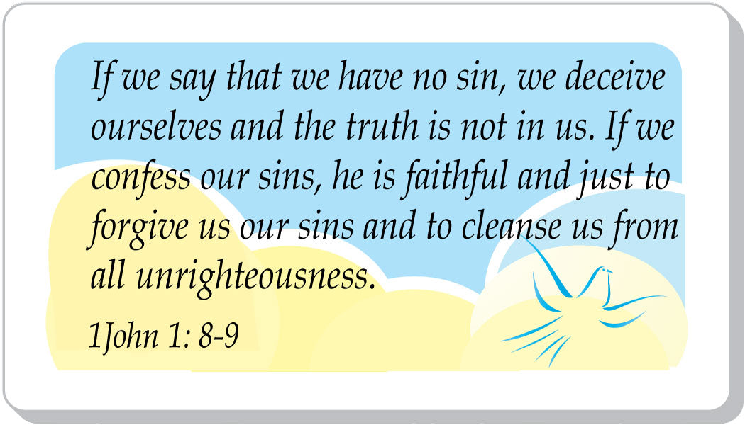 BIBLE VERSE - If we say that we have no sin, we deceive ourselves and the truth is not in us. If we confess our sins, he is faithful and just to forgive us our sins and to cleanse us from all unrighteousness. 1 John 1:8-9