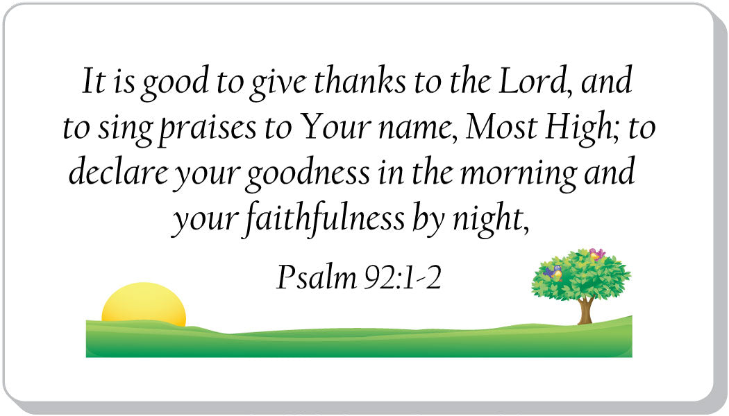 BIBLE VERSE - It is good to give thanks to the Lord, And to sing praises to Your name, O Most High; To declare Your lovingkindness in the morning and Your faithfulness every night. Psalm 92:1-2