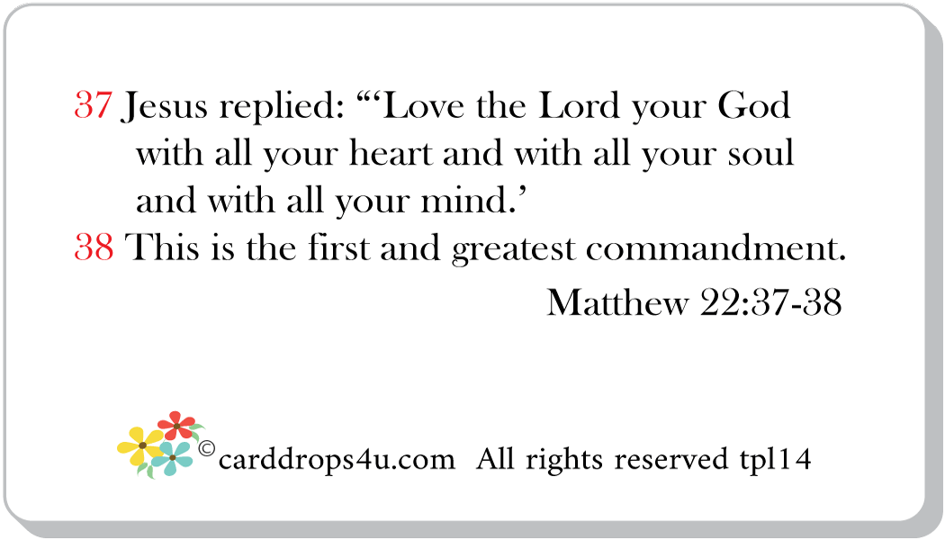 BIBLE VERSE - 37 Jesus replied: " Love the Lord your God with all your heart and with all your soul and with all your mind." 38 This is the first and greatest commandment. Matthew 22:37-38