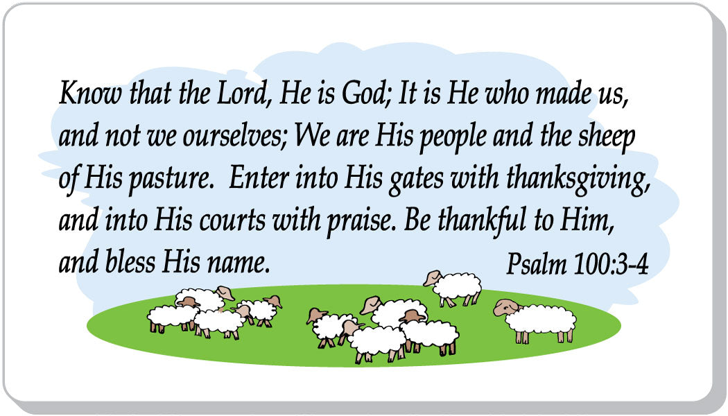 BIBLE VERSE - Know that the Lord, He is God; It is He who has made us, and not we ourselves; We are His people and the sheep of His pasture. Enter into His gates with thanksgiving, and into His courts with praise. Be thankful to Him, and bless His name. Psalm 100:3-4