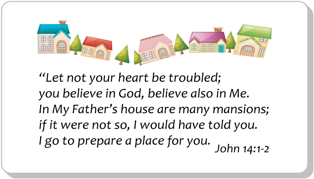 BIBLE VERSE - "Let not your heart be troubled; you believe in God, believe also in Me. In My Father's house are many mansions; if it were not so, I would have told you. I go to prepare a place for you. John 14:1-2