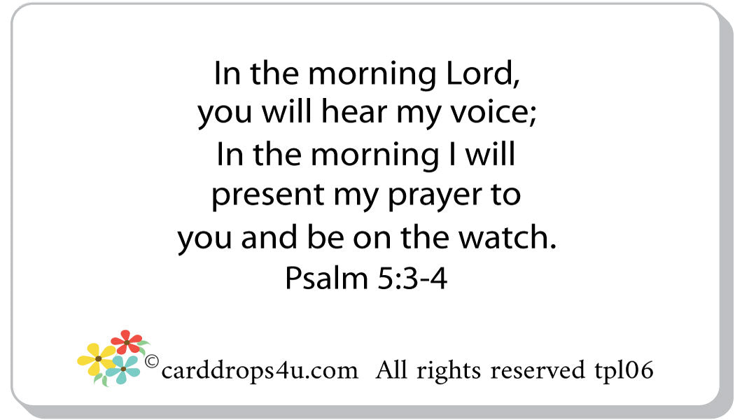 BIBLE VERSE - In the morning, Lord, You will hear my voice; In the morning I will present my prayer to You and be on the watch. Psalm 5:3-