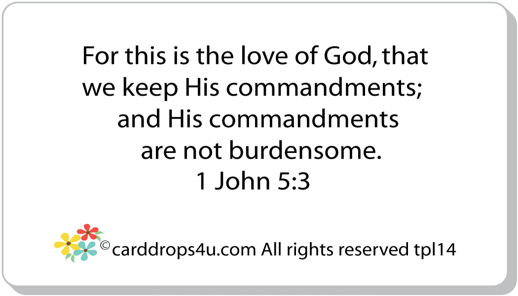 BIBLE VERSE - For this is the love of God, that we keep His commandments, and His commandments are not burdensome. 1 John 5:3