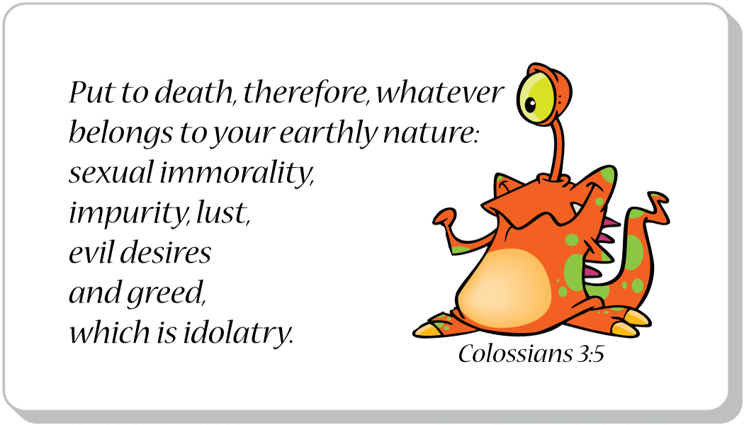 BIBLE VERSE - Put to death, therefore whatever belongs to your earthly nature: sexual immorality, impurity, lust, evil desires and greed, which is idolatry. Colossians 3:5