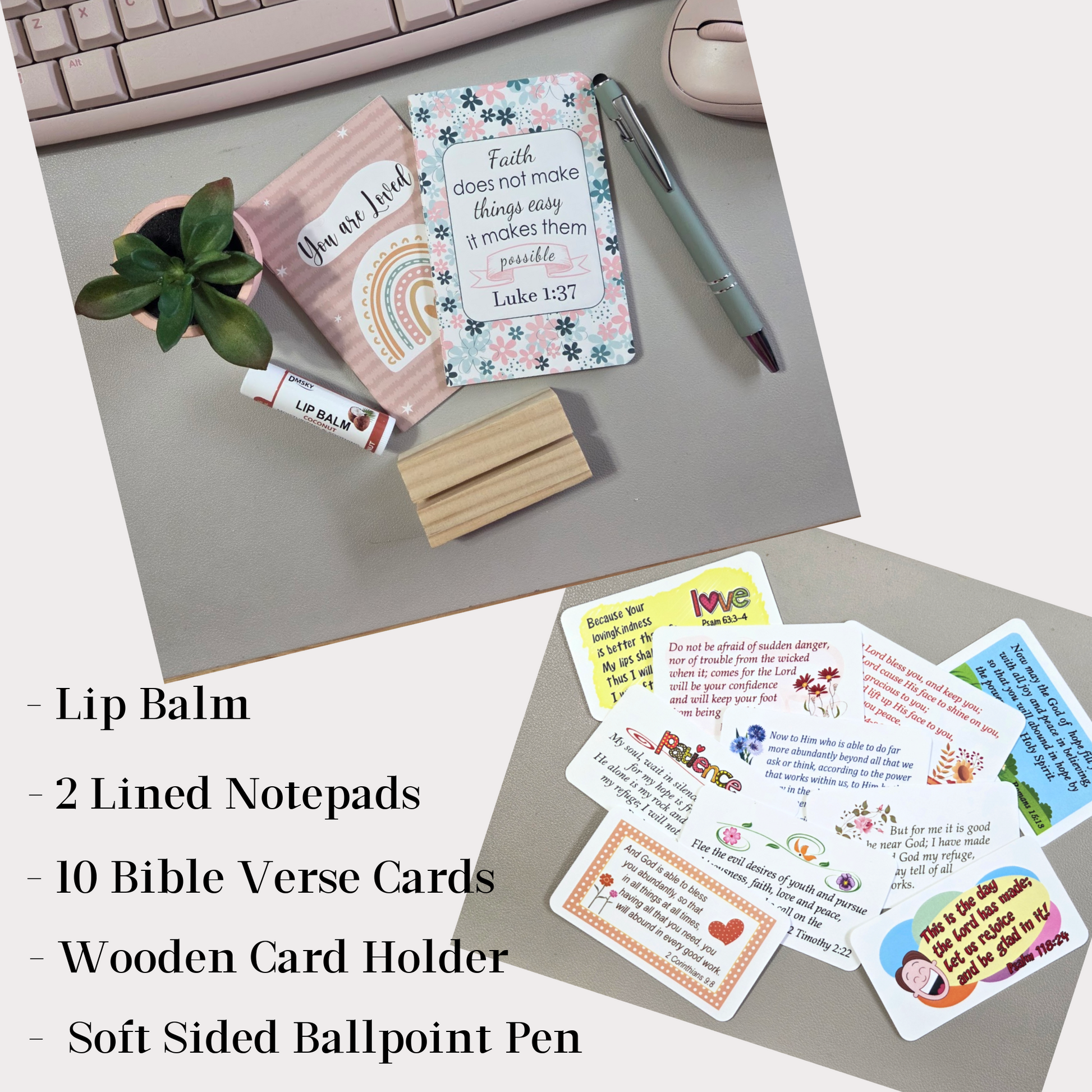 This is a lovely set of ten (10) Bible Verse Cards from the Old and New Testament. A ball point pen (refillable) and two notepads are included for your thoughts.
