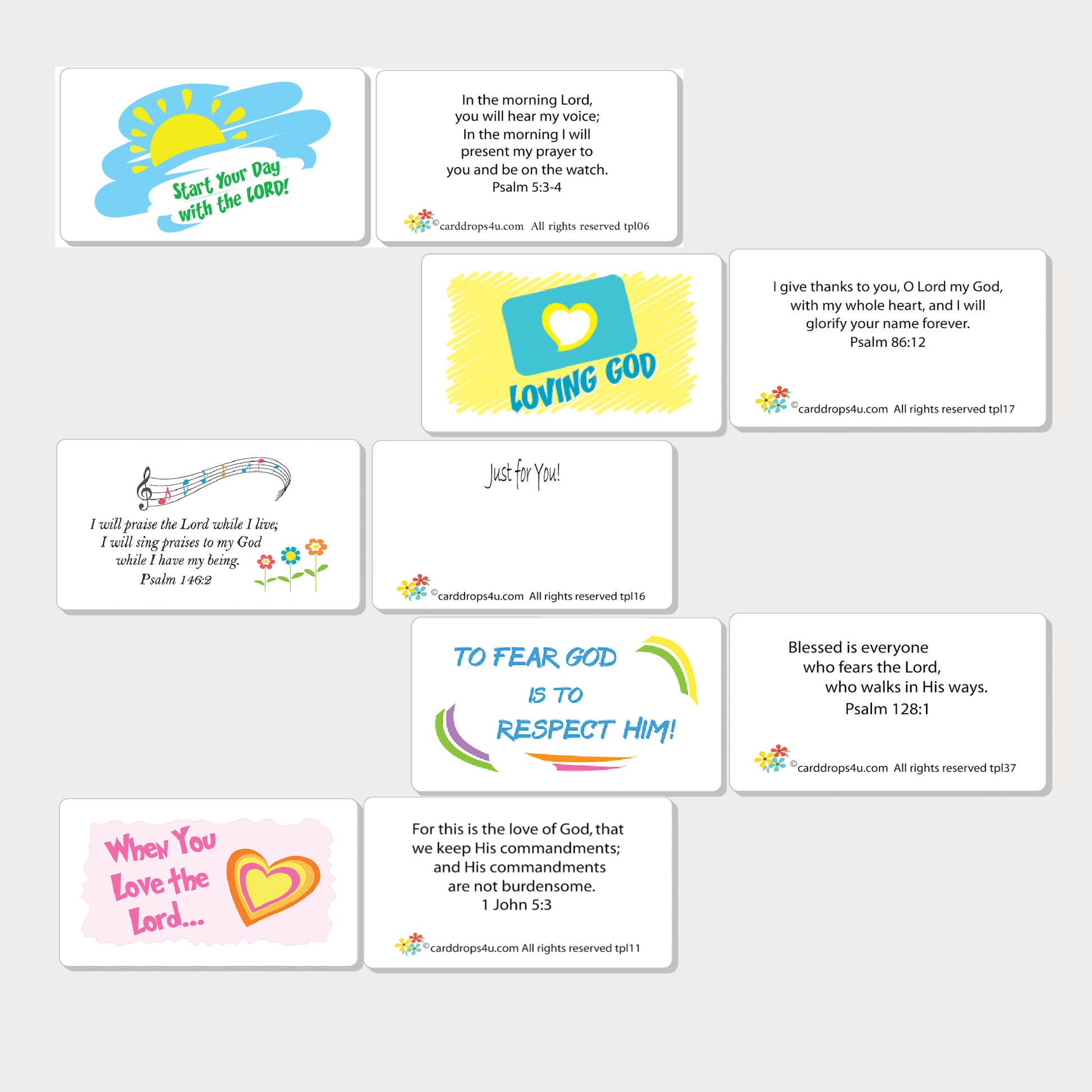 - The Bible Verse cards are laminated and produce a colorful and professional appearance and are easy to read. They will hold up to spills, tears, or other accidents unlike paper cards. Laminated cards are durable and easy to keep clean.