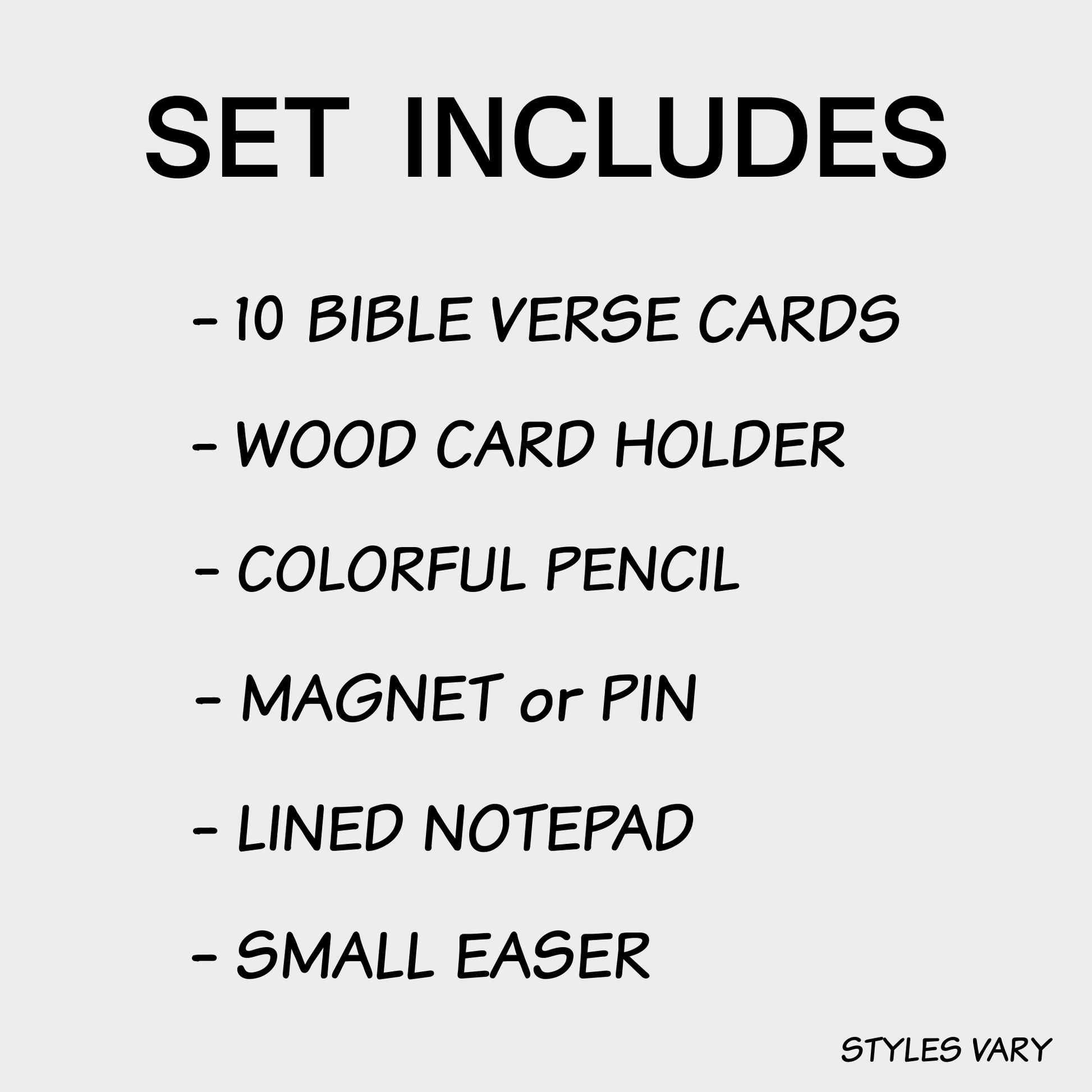 - A lined notepad with an inspirational cover and pencil are included in this set to encourage writing out verses and/or jotting down notes. Notepad and pencil styles vary.