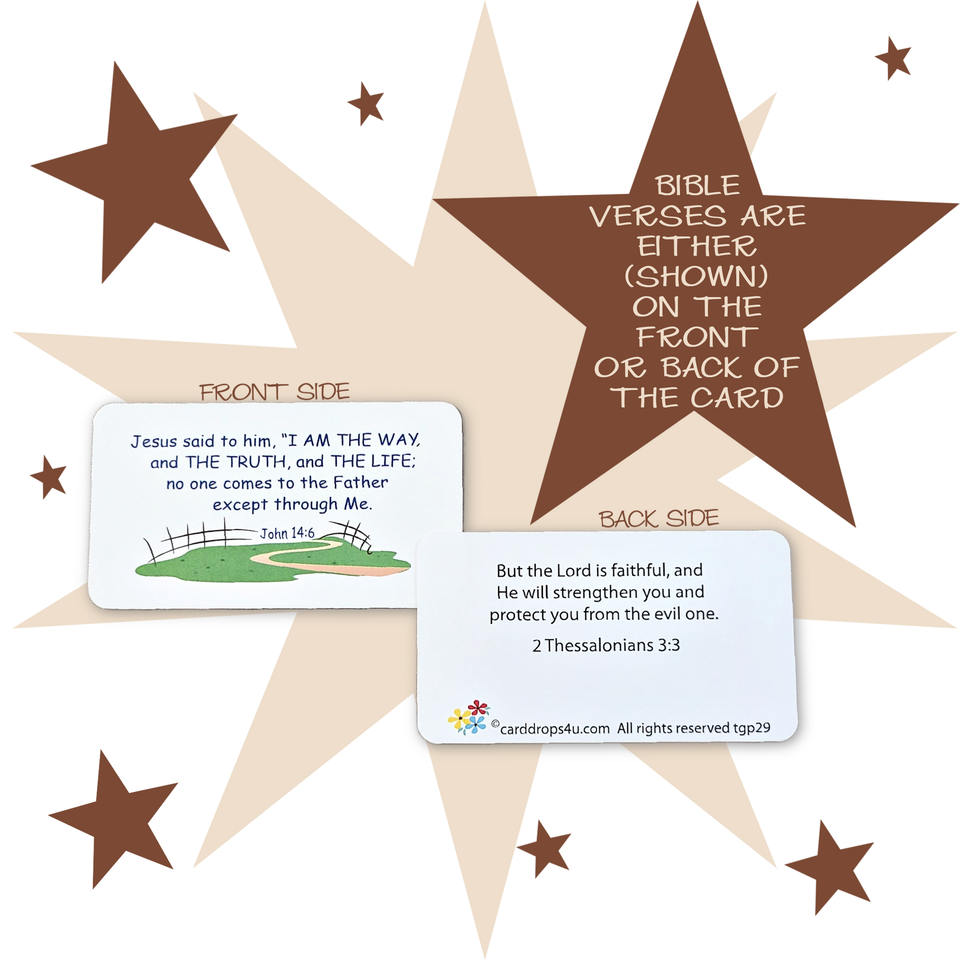 - Included are ten (10) Bible verse cards along with a wood card holder. Each card is designed to help in memorizing the verses.