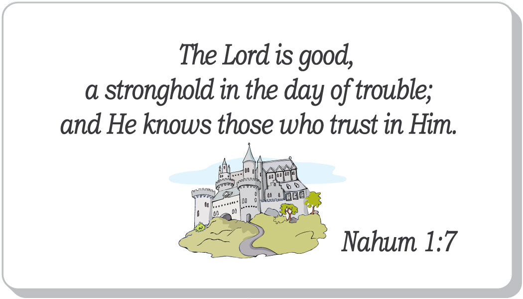 BIBLE VERSE - The Lord is good, a stronghold in the day of trouble; and He knows those who trust in Him. Nahum 1:7