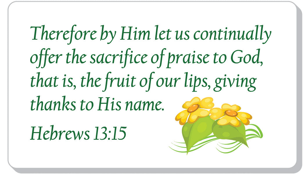 BIBLE VERSE - Therefore by Him let us continually offer the sacrifice of praise to God, that is, the fruit of our lips, giving thanks to His name. Hebrews 13:15