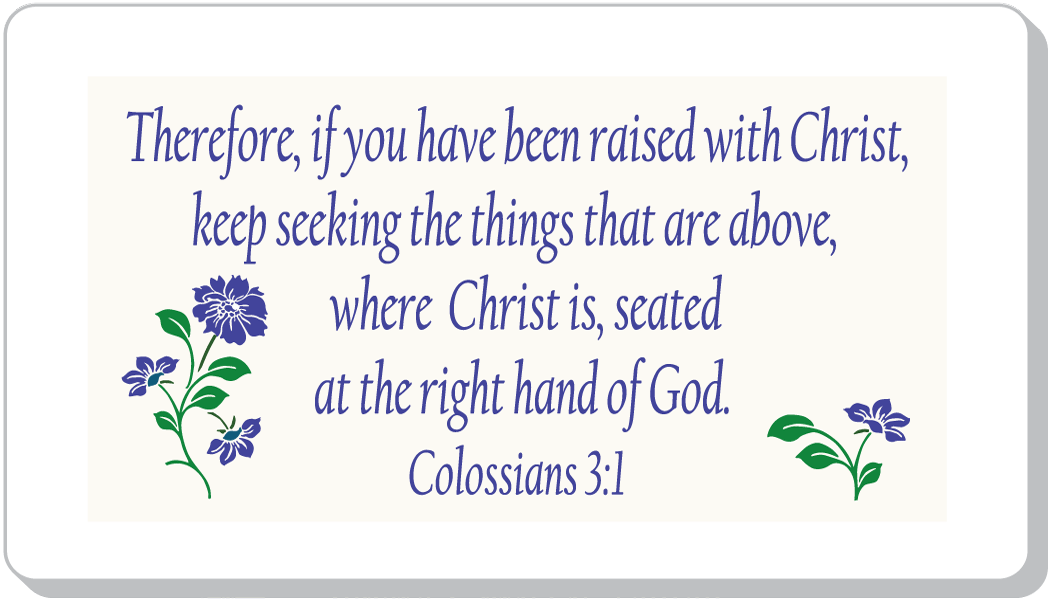 BIBLE VERSE - Therefore, if you have been raised with Christ, keep seeking the things that are above, where Christ is, seated at the right hand of God. Colossians 3:1