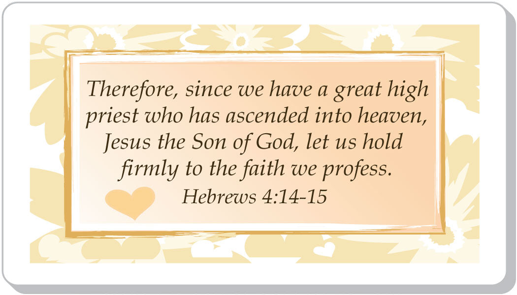 BIBLE VERSE - Therefore, since we have a great high priest who has ascended into heaven, Jesus the Son of God, let us hold firmly to the faith we profess. Hebrews 4:14-15
