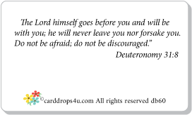BIBLE VERSE - The Lord himself goes before you and will be with; he will never leave you nor forsake you. Do not be afraid; do not be discouraged." Deuteronomy 31:8