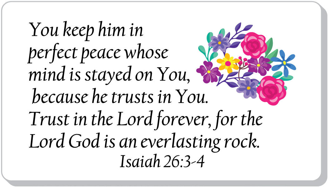 BIBLE VERSE - You keep him in perfect peace whose mind is stayed on You, because he trusts in You. Trust in the Lord forever, for the Lord God is an everlasting rock. Isaiah 26:3-4